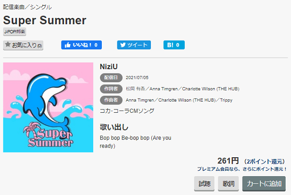 music.jpを使ってNiziUの『Super Summer』をダウンロードする手順も簡単。